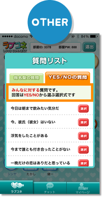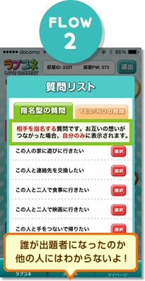 出題者はランダムに選択。出題者は質問一覧から質問を選ぼう!