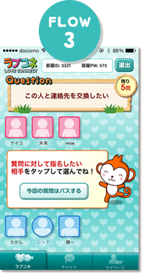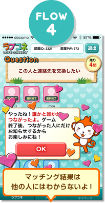 ゲームが終了後、お互いにマッチングした二人だけに結果を教えてくれるよ!