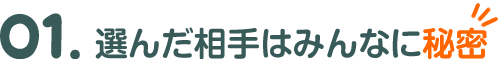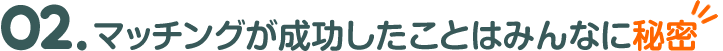 気になる相手とマッチングしても、つながった事は二人以外誰にも分らないんだ!つながった二人だけでチャットもできるから、みんなに内緒で秘密の会話を楽しもう!